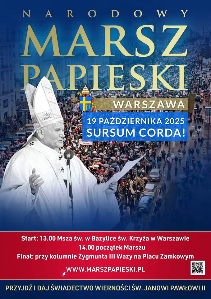 Zapraszamy do udziału w Narodowym Marszu Papieskim – 19 października 2025 w Warszawie.